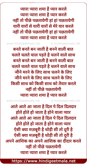 Lyrics of Pyara Pyara Samaan Hai - प्यारा प्यारा शमा है