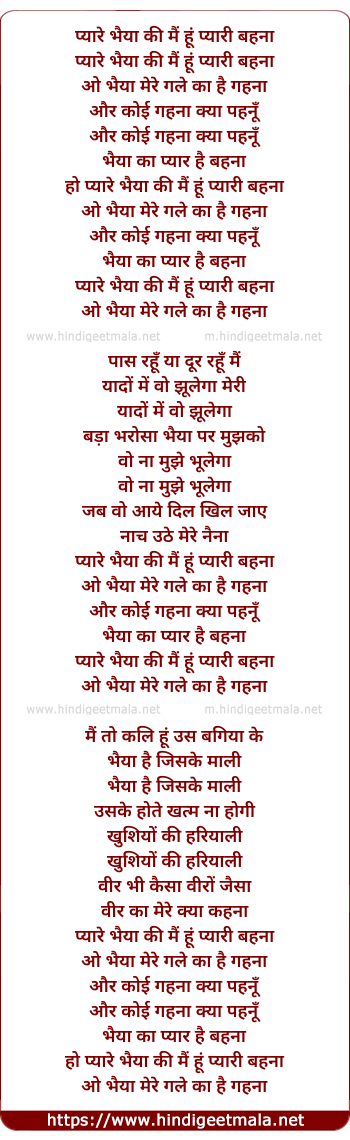 Lyrics of Pyare Bhaiya Ki Mai Hu Pyari Behna - प्यारे भैया की मैं हूं प्यारी बहना