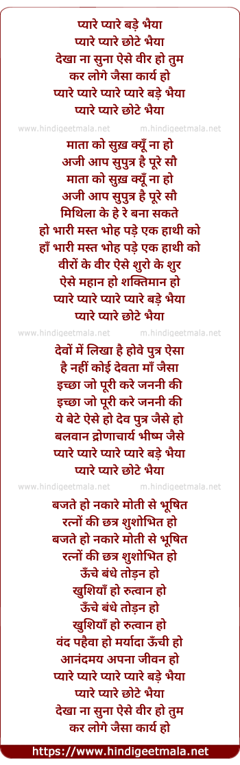 Lyrics of Pyare Pyare Bade Bhaiya - प्यारे प्यारे बड़े भैया