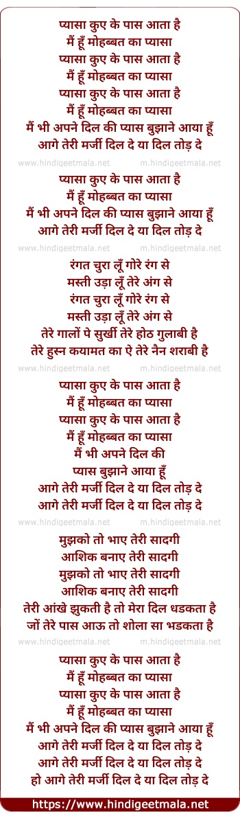 Lyrics of Pyasa Kuve Ke Pas Aata Hai - प्यासा कुएँ के पास आता है