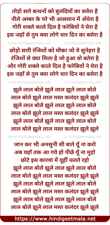 Lyrics of Qalandar, Jhule Laal - तोड़ो सारे बन्धनों को बुलंदियों का सवेरा है