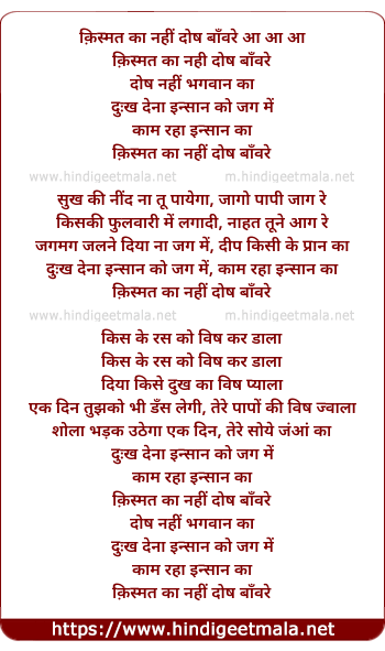 Lyrics of Qismat Kaa Nahin Dosh Baanvare - क़िस्मत का नहीं दोष बाँवरे