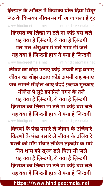 Lyrics of Yah Kyaa Hai Zindagi - ये क्या है ज़िन्दगी