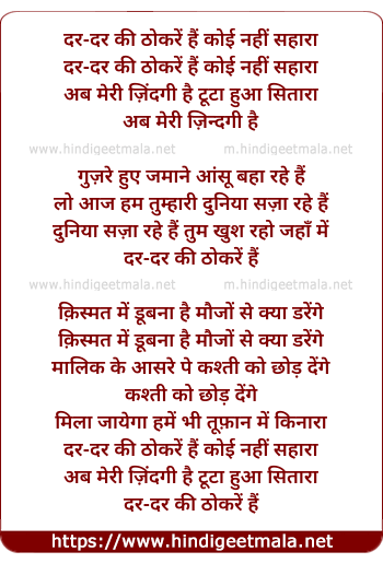 Lyrics of Qismat Me, Dar Dar Kii Thokaren Hain - किस्मत में, दर दर की ठोकरें हैं