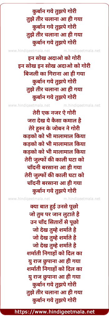 Lyrics of Qurban Gaye Tujh Pe Gori - कुर्बान गये तुझपे गोरी