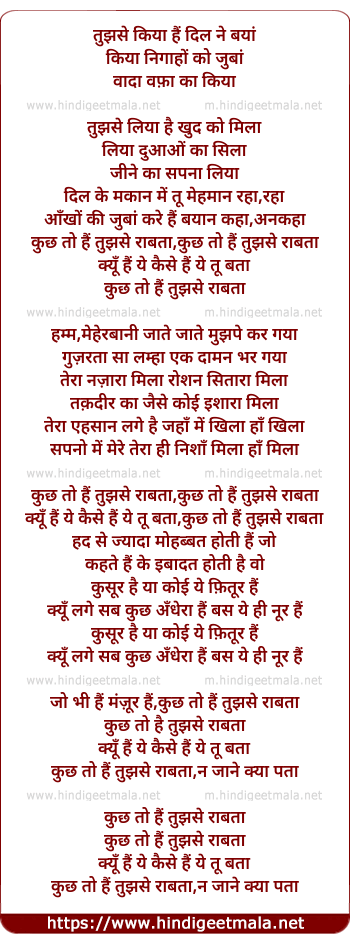 kyun hai ye kaise hai ye tu bata, kuch toh hai tujhse raabta
