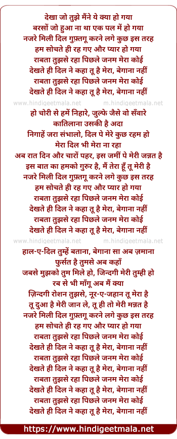 dekhte hi dil ne kaha tu hai mera, begana nahi