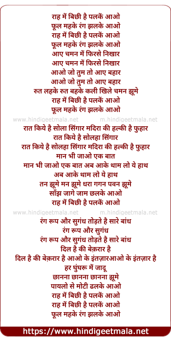 Lyrics of Raah Mein Bichhi Hain Palake Aao - राह में बिछी है पलकें आओ