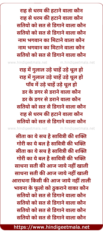 Lyrics of Raah Se Dharam Ki Hatane Wala Kaun - राह से धरम की हटाने वाला कौन