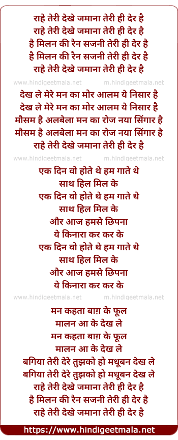 Lyrics of Raahe Teri Dekhe Zamana - राहे तेरी देखे जमाना