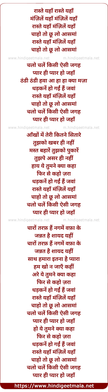 Lyrics of Raaste Yahaan Manzilen Yahaan - रास्ते यहाँ रास्ते यहाँ