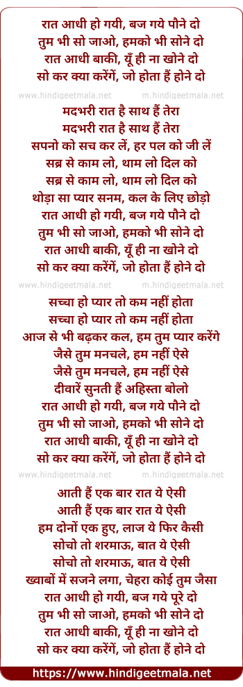 Lyrics of Raat Aadhi Ho Gayi - रात आधी हो गयी