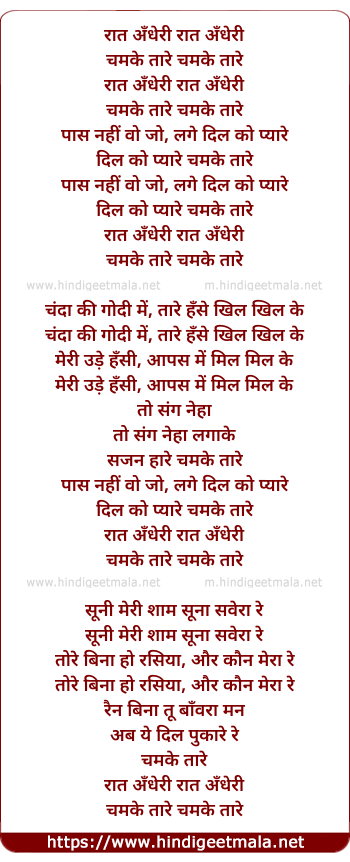 Lyrics of Raat Andheri Chamke Tare - रात अँधेरी रात अँधेरी