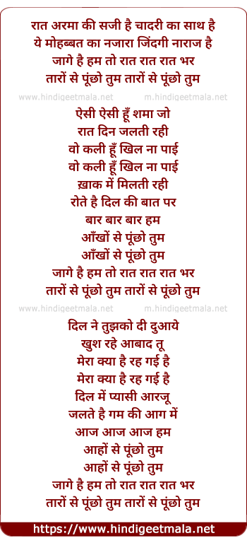 Lyrics of Raat Arman Kii Saji Hai - रात अरमा की सजी है