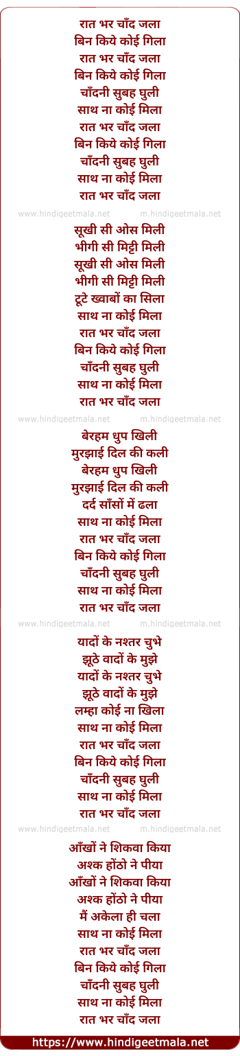 Lyrics of Raat Bhar Chaand - रात भर चाँद जला