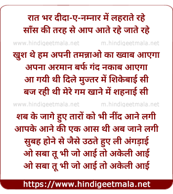 Lyrics of Raat Bhar Deeda-E Namnar - रात भर दीदा-ए-नम्नार में लहराते रहे