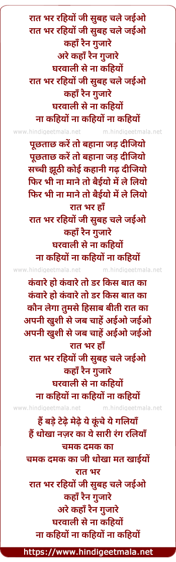 Lyrics of Raat Bhar Rahiyo - रात भर रहियों