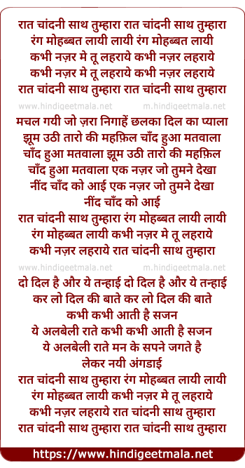 Poetic Translation - Lyrics of Raat Chandni Saath Tumhara - रात चांदनी साथ तुम्हारा