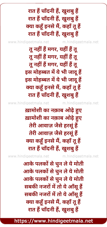 Lyrics of Raat Hai - रात हैं चाँदनी हैं, खुशबु हैं