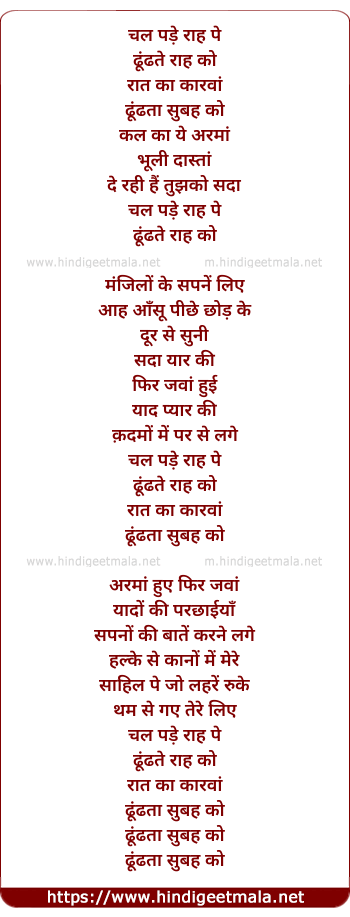 Lyrics of Raat Kaa Karvan - चल पड़े राह पे