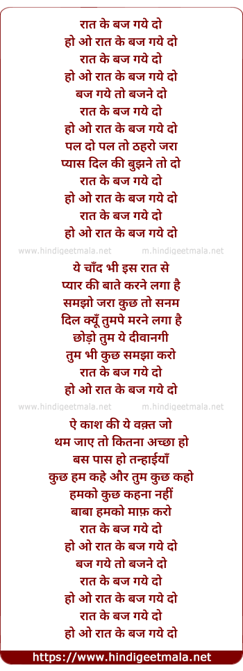 Lyrics of Raat Ke Baj Gaye Do - रात के बज गये दो