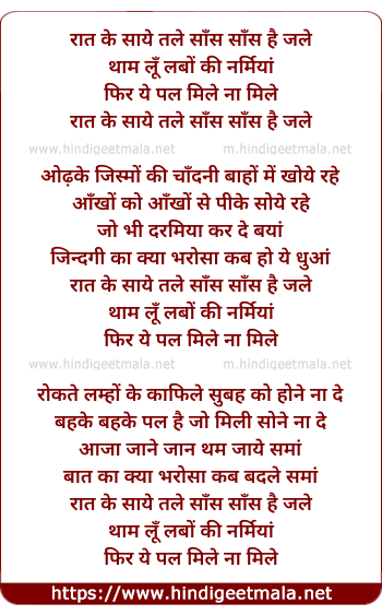 Lyrics of Raat Ke Saye Tale - रात के साये तले