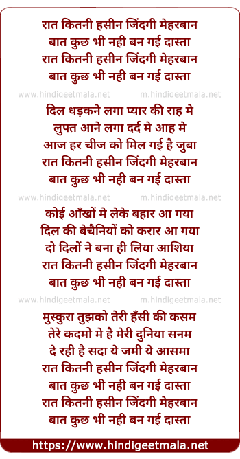 Lyrics of Raat Kitni Haseen Zindagi Meharban - रात कितनी हसीन जिंदगी मेहरबान