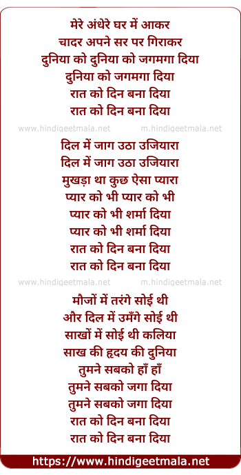 Lyrics of Raat Ko Din Bana Diya - रात को दिन बना दिया