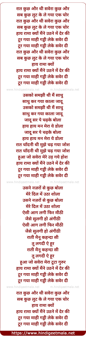 Lyrics of Raat Kuchh Aur Thi Sabera Kuchh Aur - रात कुछ और थी सवेरा कुछ और