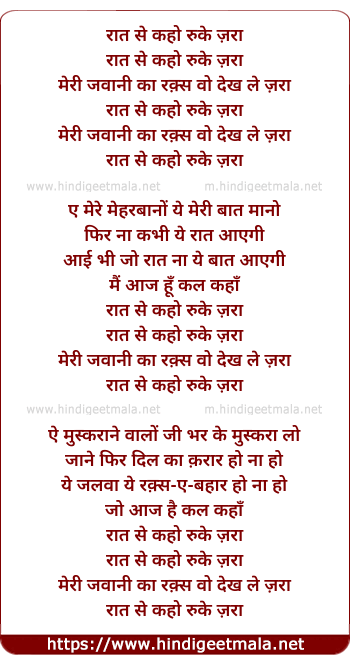 Lyrics of Raat Se Kaho Ruke Zara - रात से कहो रुके ज़रा