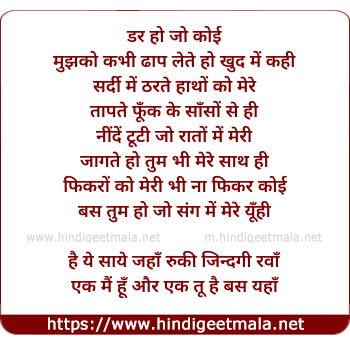 Lyrics of Raatein (Reprise) - डर हो जो कोई