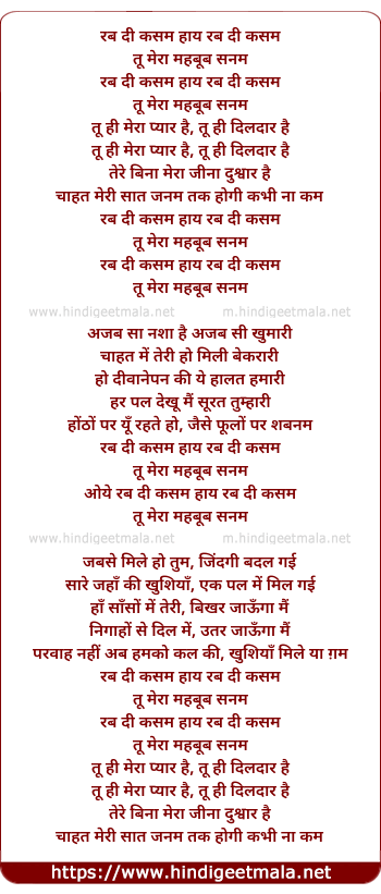 Lyrics of Rab Dee Kasam Hay Rab Dee Kasam - रब दी कसम हाय रब दी कसम