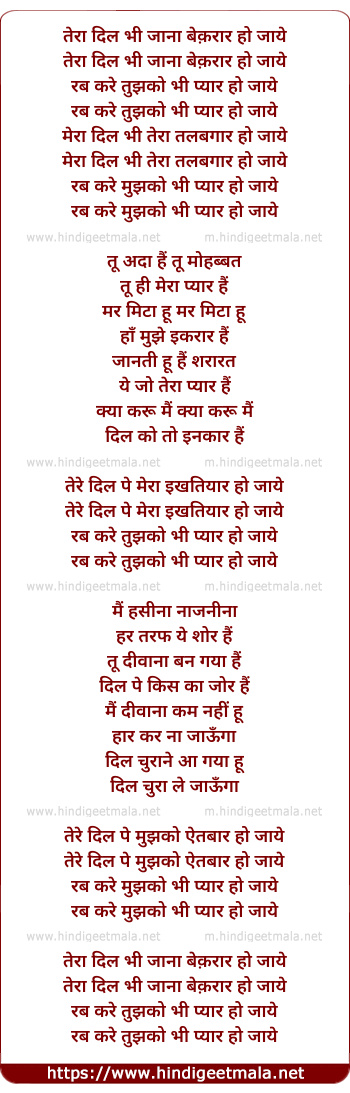 Lyrics of Rab Kare Tujhko Bhi Pyaar Ho Jaye - रब करे तुझको भी प्यार हो जाये