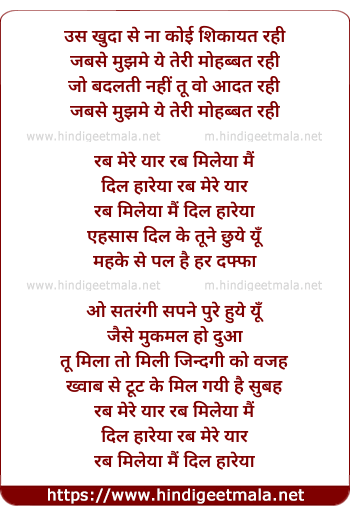 Poetic Translation - Lyrics of Rab Mere Ya - रब मेरे या