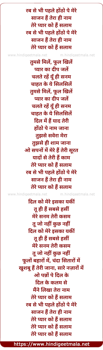 Lyrics of Rab Se Bhi Pahle Hontho Pe Mere (Female) - रब से भी पहले होंठो पे मेरे