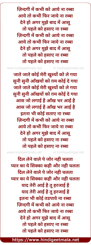 Lyrics of Rabba (Farewell To Sadness Mix) - रब्बा