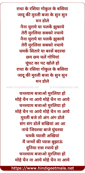 Lyrics of Radha Ke Rasiya Gokul Ke Basiya - राधा के रसिया गोकुल के बसिया