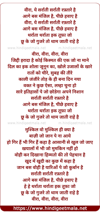 Lyrics of Yeh Sarrati Sarrati Raftare Hai - ये सर्राती सर्राती रफ़्तारे है