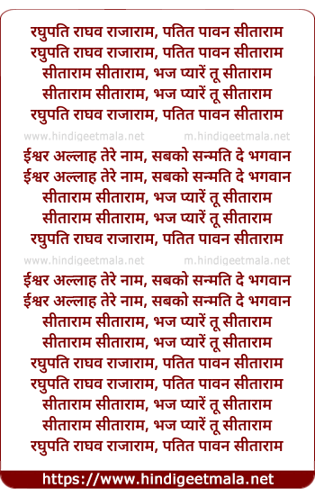 Lyrics of Raghupati Raghav Raja Ram - रघुपति राघव राजा राम