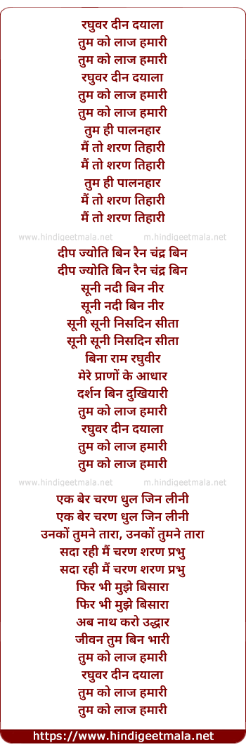 Lyrics of Raghuvar Deen Dayal - रघुवर दीन दयाला