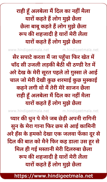 Lyrics of Rahee Hu Albela Mai Dil Ka Nahi Maila - राही हूँ अलबेला मैं दिल का नहीं मैला