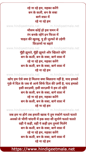 Lyrics of Rahen Naa Rahen Ham Mahakaa Karenge (Duet Version) - रहे ना रहे हम, महका करेंगे