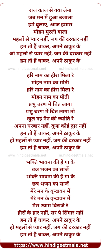 Lyrics of Raj Kaj Se Kya Lena - राज काज से क्या लेना
