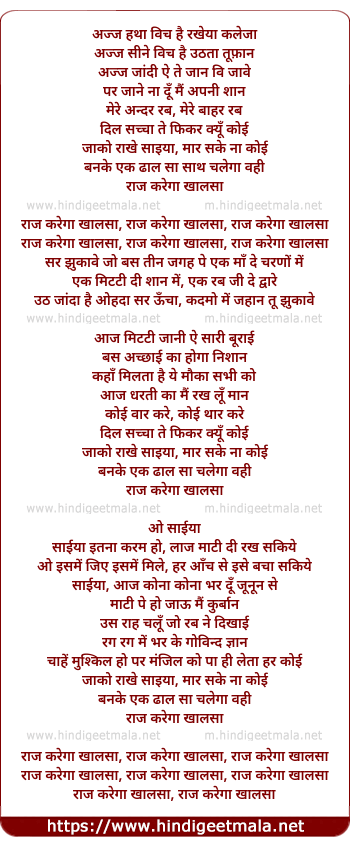 Lyrics of Raj Karega Khalsaa - राज करेगा खालसा