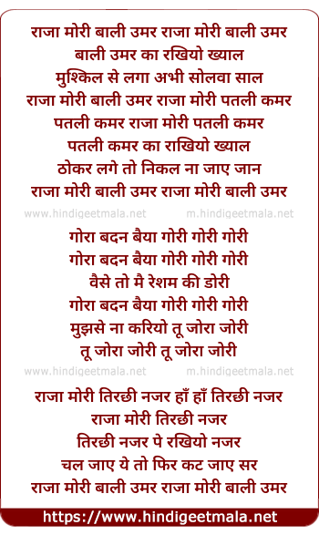 Lyrics of Raaja Mori Bali Umar - राजा मोरी बाली उमर