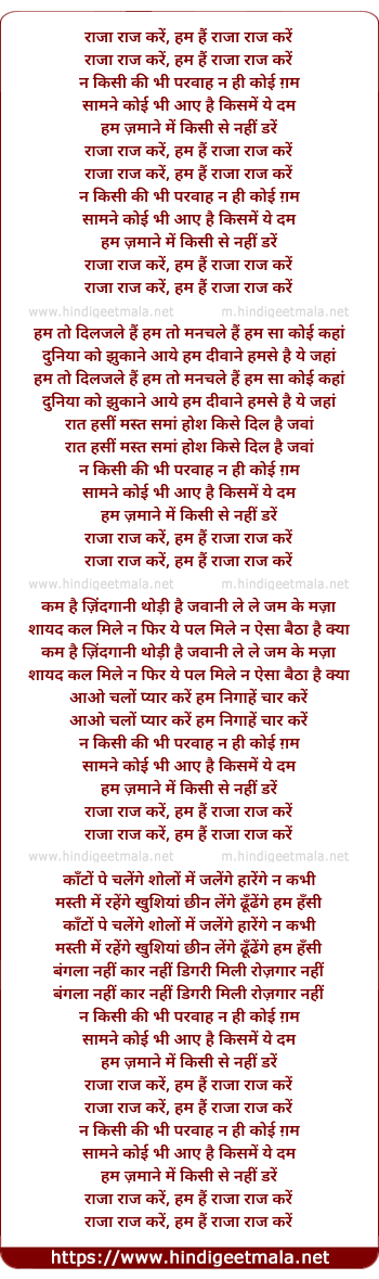 Lyrics of Raja Raaj Kare - राजा राज करें
