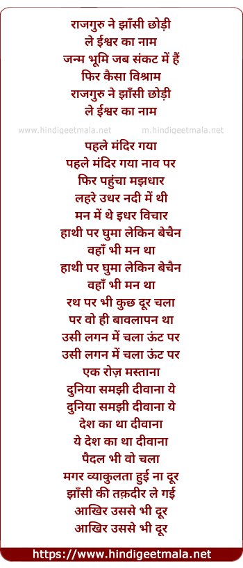 Lyrics of Rajguru Ne Jhansi Chhodi - राजगुरु ने झाँसी छोड़ी