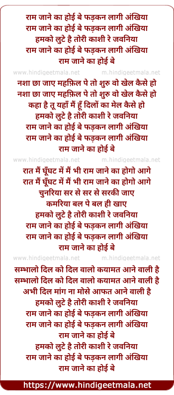 Lyrics of Ram Jaane Ka Hui - राम जाने का होई