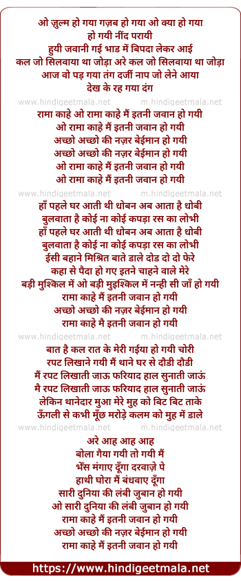 Lyrics of Ram Kahe Mai Itni Jawaan Ho Gayi - राम कहे मैं इतनी जवान हो गयी