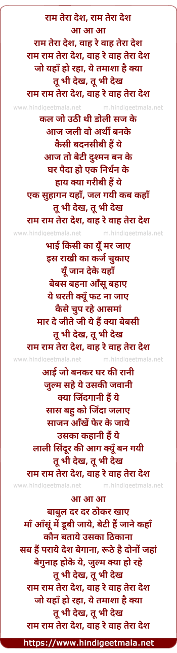 Lyrics of Ram Tera Desh - राम तेरा देश, राम तेरा देश